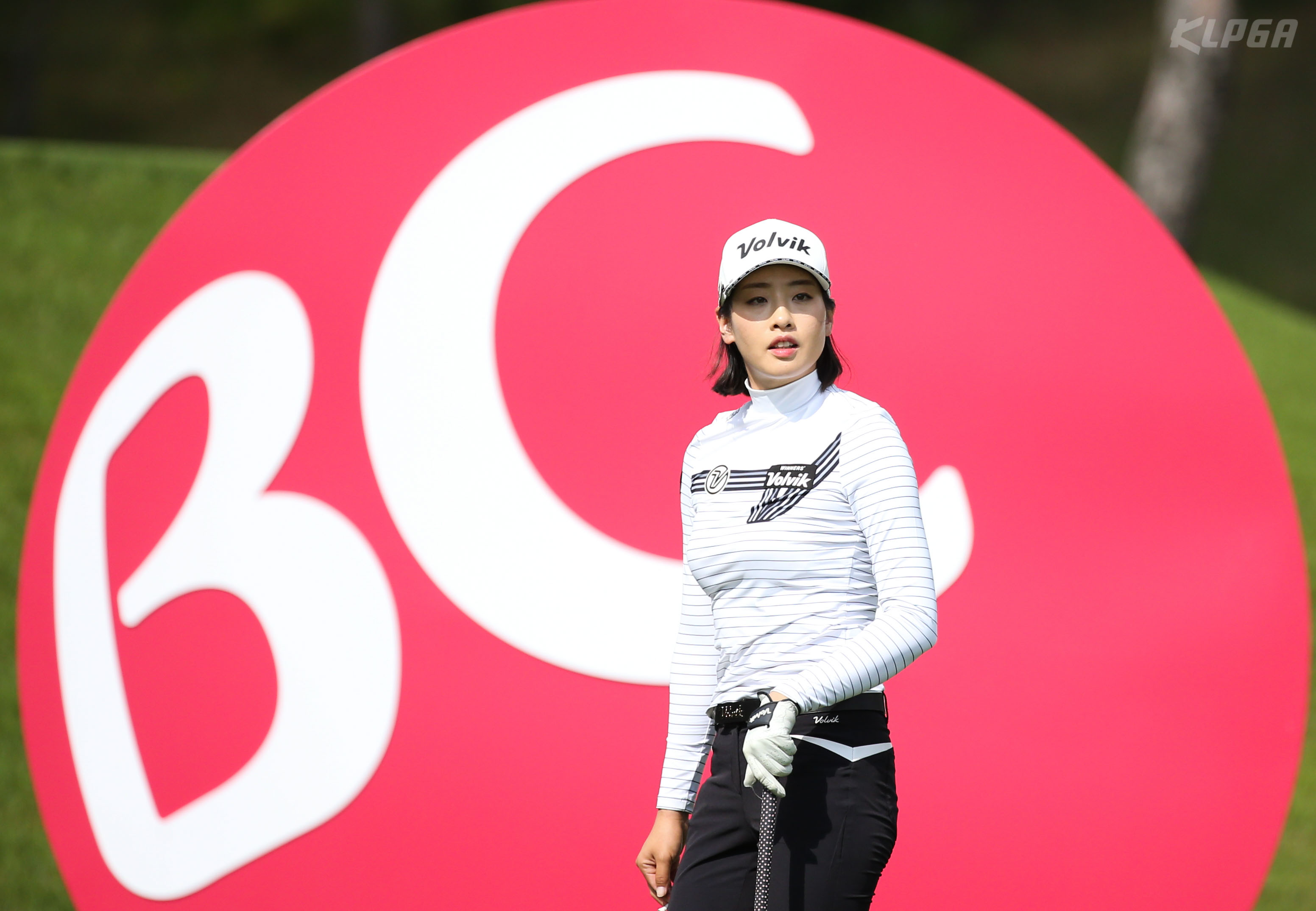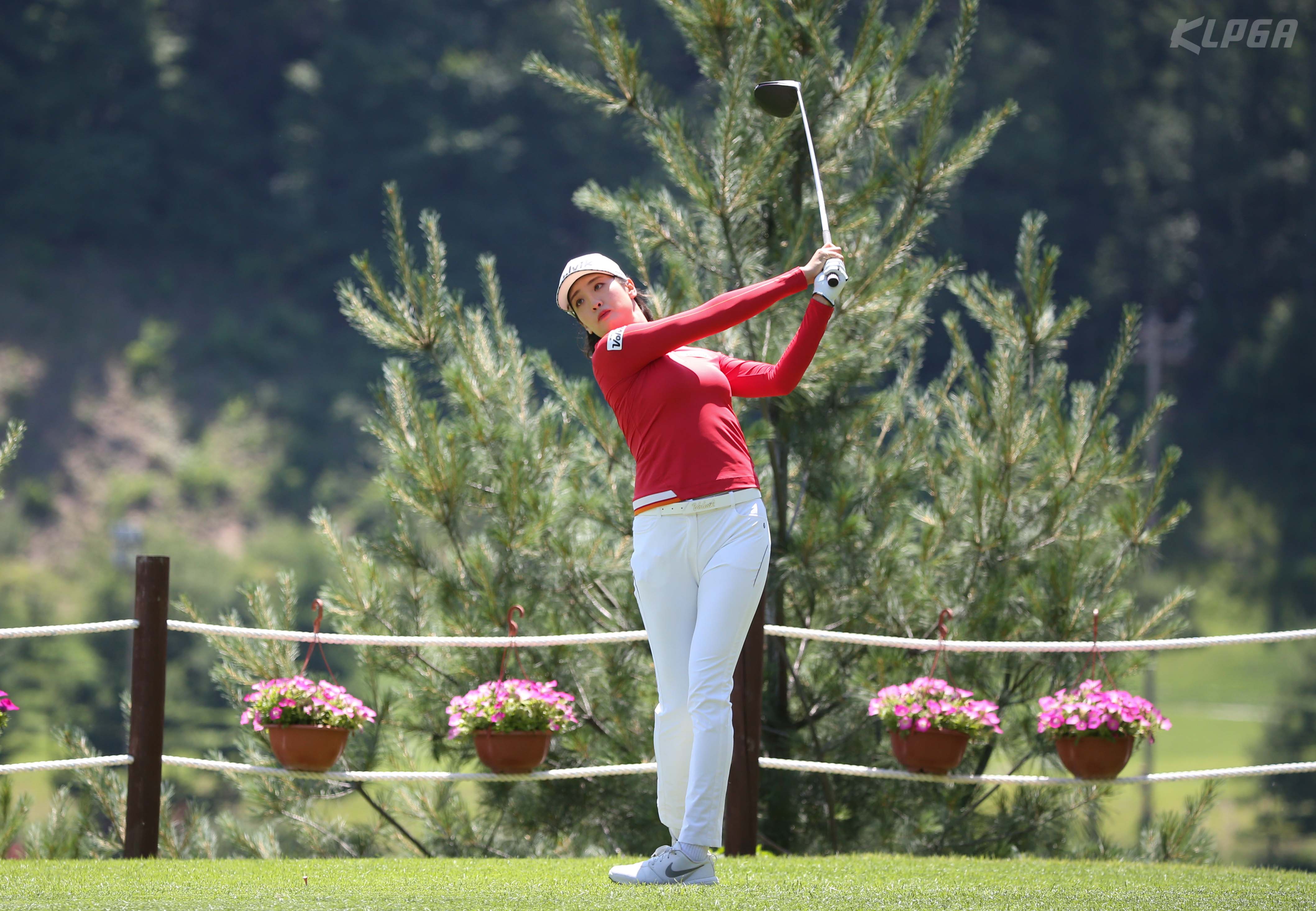 한상희 16번홀 티샷후 타구의 방향 살피고 있다