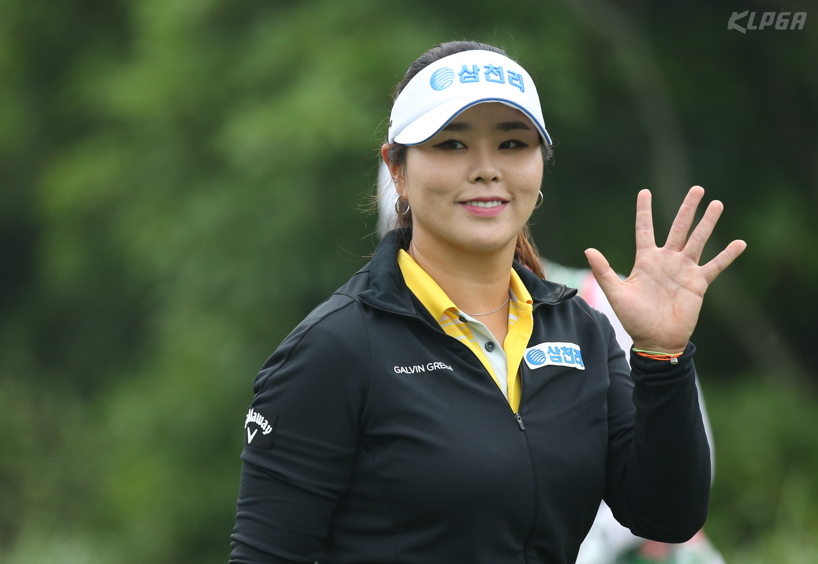 조윤지 2번홀 티샷후 이동하며 인사하고 있다
