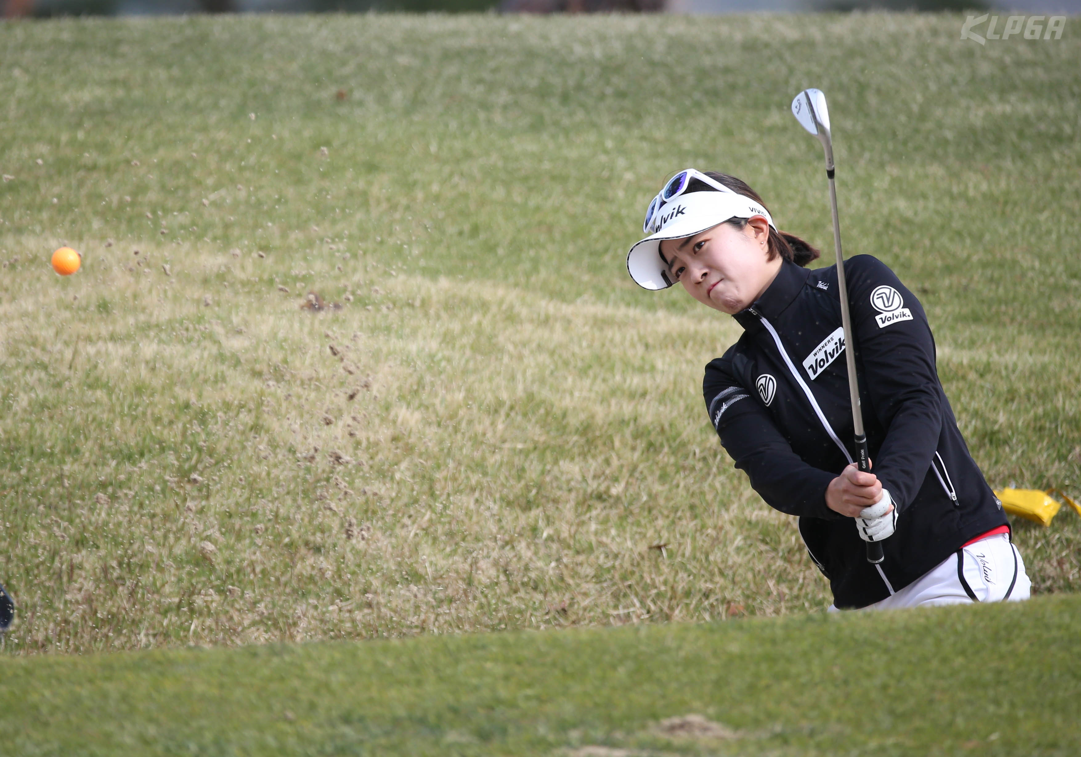 신혜원2 17번홀 벙커샷 시도하고있다