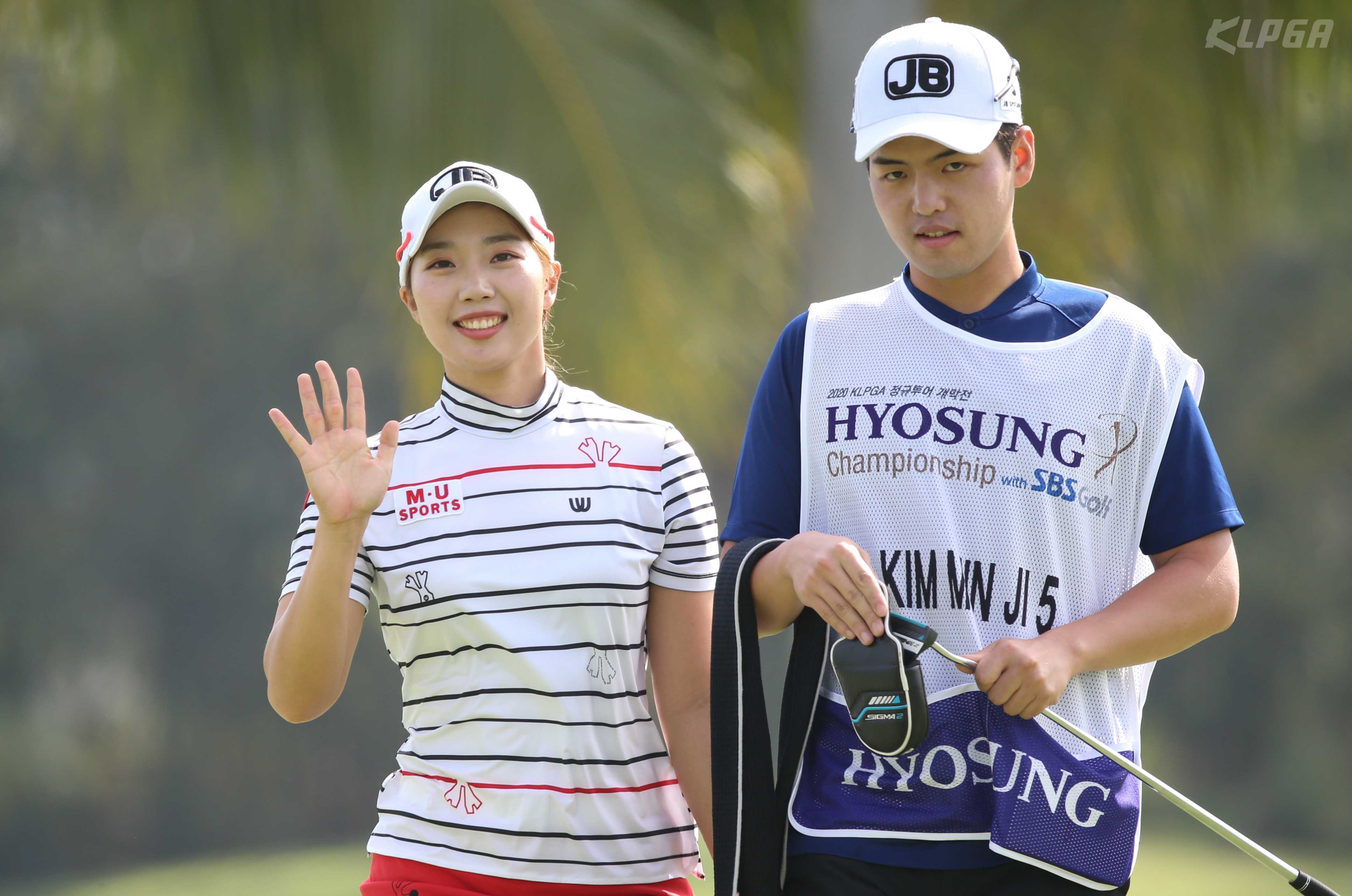 김민지5 2번홀 홀아웃하며 인사하고 있다