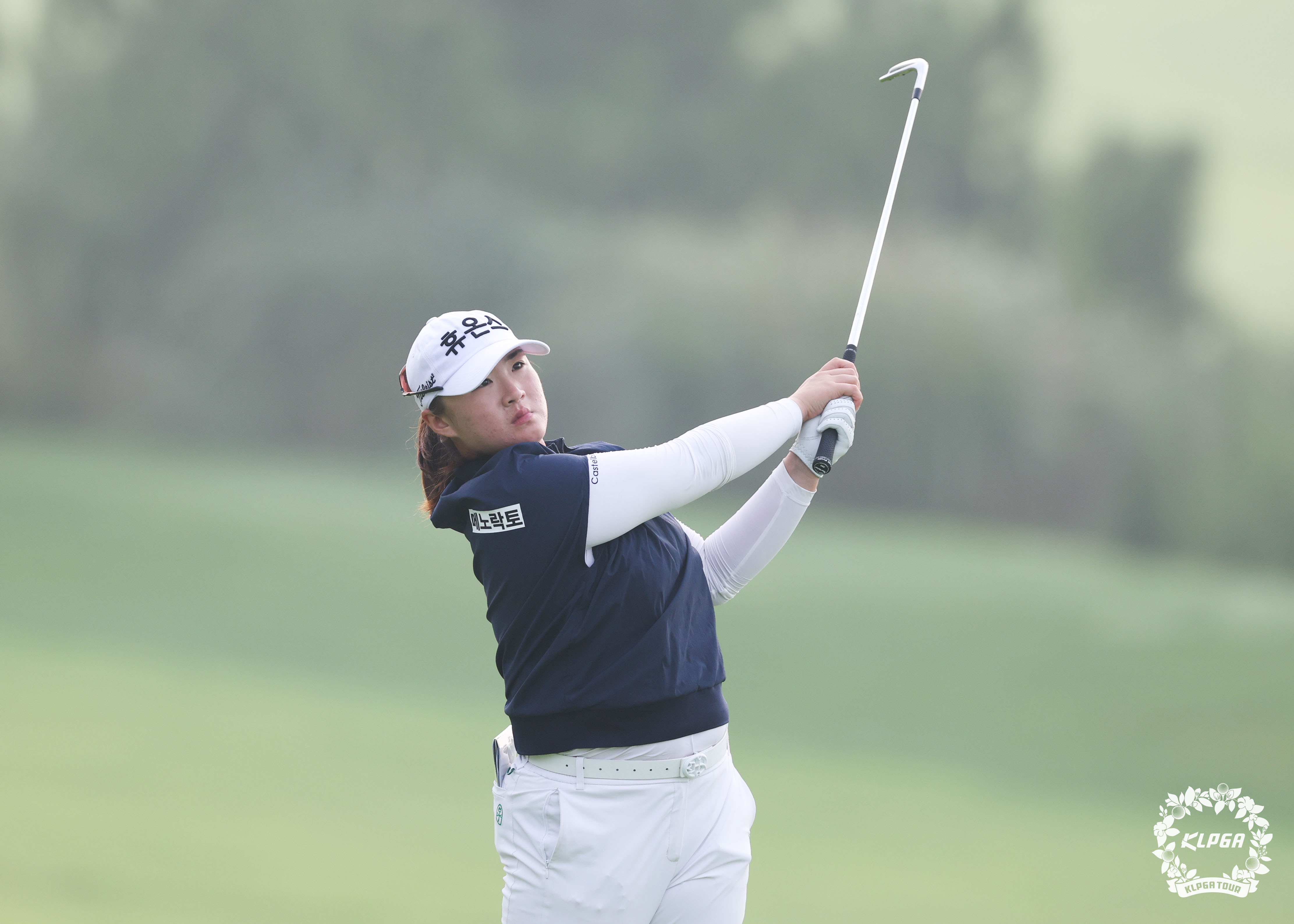 정세빈 7번홀 아이언샷 날리고 있다
